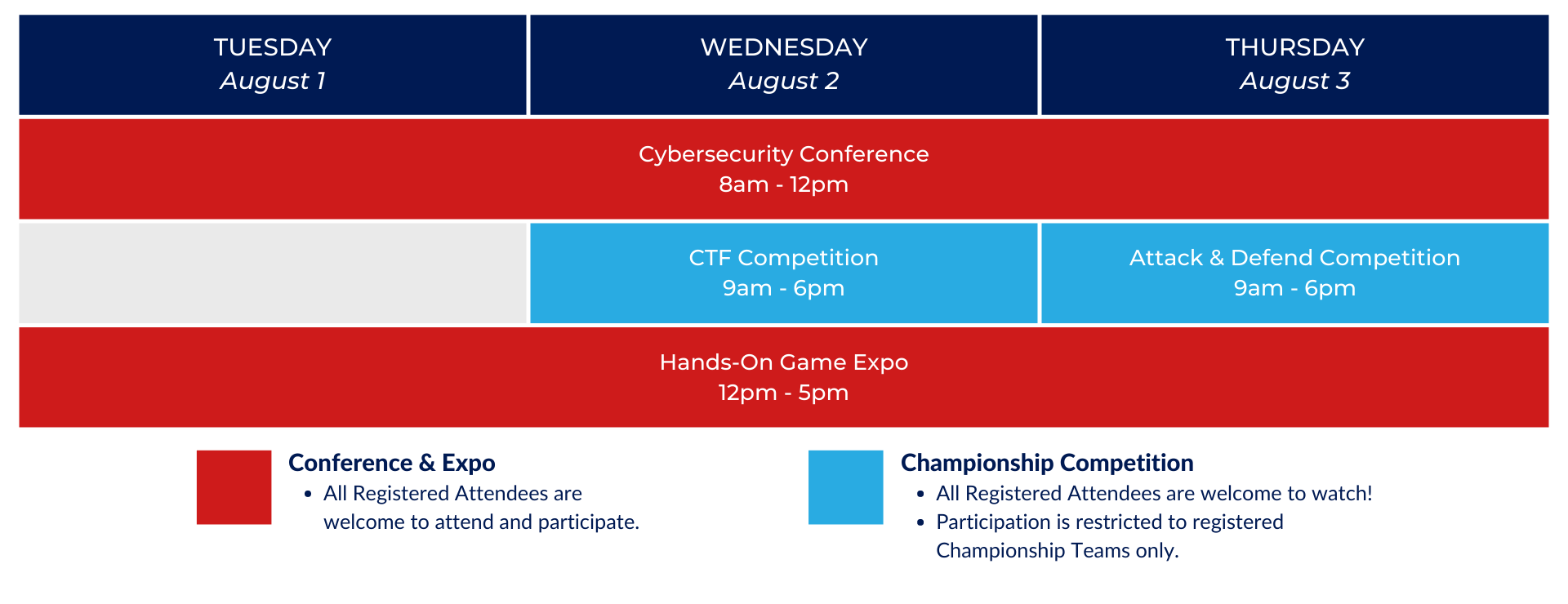 As if the action of the games wasn't enough, our speaker lineup will keep you on the edge of your seats. They include leading cyber experts from the US Department of Homeland Security, EU, UAE, Microsoft, Mastercard, Google & Mandiant, and more! These global speakers from governments, corporations, and academia will discuss topics including: